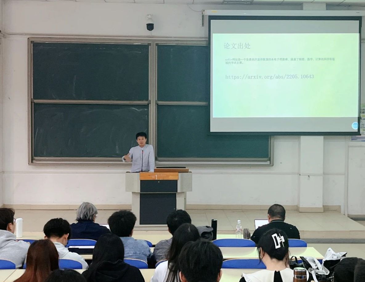 随后,中软国际教育科技集团天津公司卓越研究院院长张怀亮为同学们带来了题为“‘数智化转型’下的人工智能应用”的精彩演讲。他深入浅出地讲解了数智化转型的必然趋势,以及人工智能在这一过程中的关键作用。通过生动的案例和详实的数据,让同学们对人工智能的应用前景有了更加清晰地认识。
