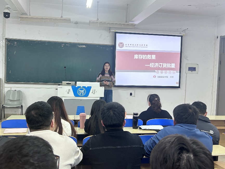 李雯老师以“库存的救星——经济订货批量”为主题,通过一系列生动的案例和严谨的数据分析,深入浅出地阐述了经济订货批量在库存管理中的关键作用。课程伊始,她以一个真实的生产案例作为切入点,提出了“如何以最低的成本管理库存”的挑战性问题,成功激发了学生的兴趣。在讲授过程中,李老师通过清晰的逻辑推演,逐步剖析了经济订货批量的理论基础,并结合图表与公式进行详细讲解,使得深奥的理论知识变得直观易懂。