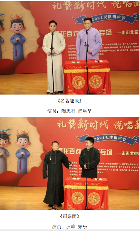 12月5日晚,“礼赞新时代 说唱新生活——2024天津相声节”《鱼龙百戏》相声专场走进新葡的京集团8814登录入口。此次活动由市委宣传部、市文联、市文化和旅游局、天津海河传媒中心、南开区人民政府、北方演艺集团主办,市曲艺家协会、天津广播电视台文艺频道、南开区委宣传部、区文化和旅游局、区文联共同承办。